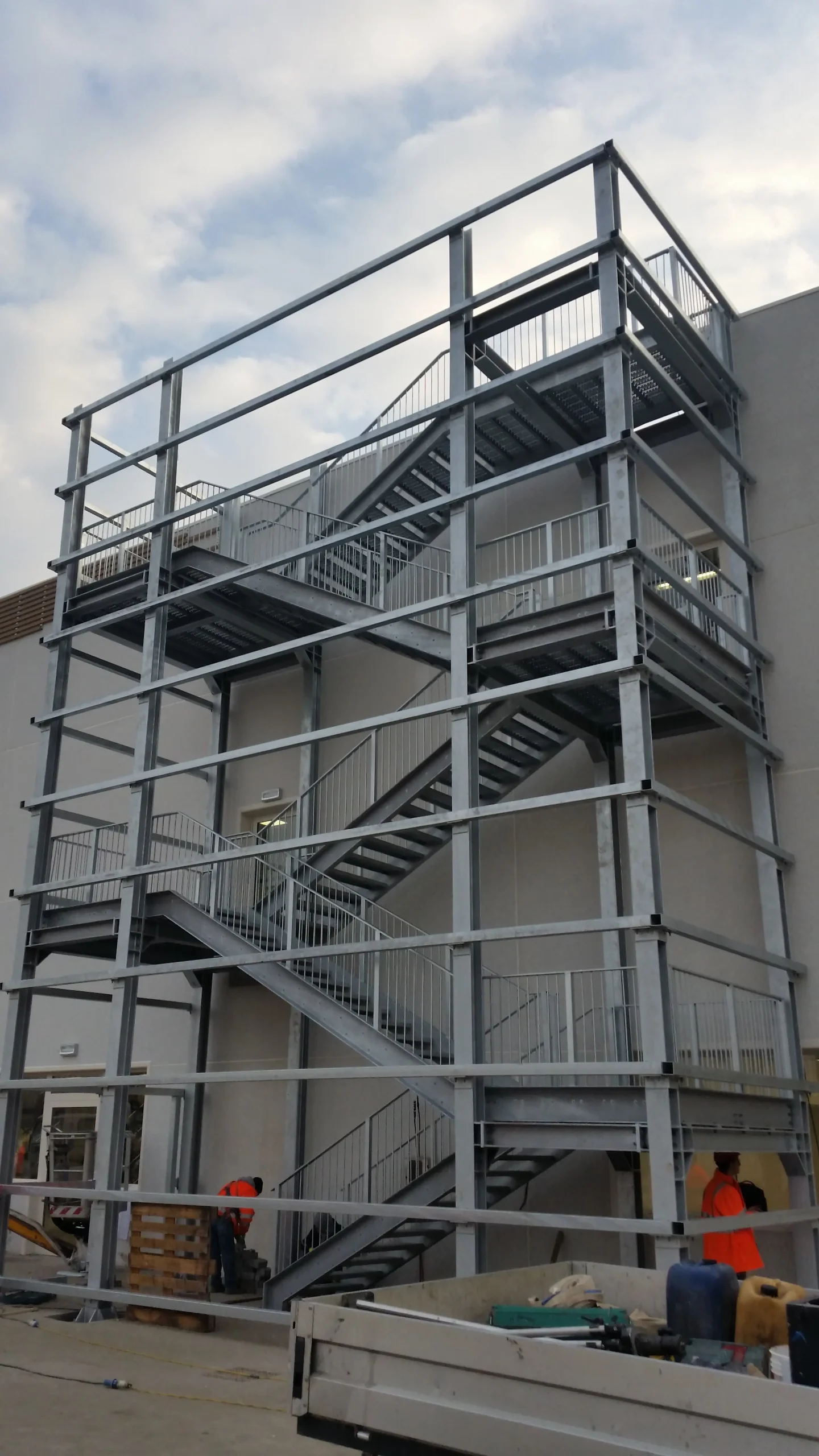 A seconda delle caratteristiche dell’immobile e delle esigenze del committente, le scale di emergenza possono essere a chiocciola, a rampa unica o a rampe multiple con pianerottoli di sosta, e sono sempre dotate di parapetti anticaduta, corrimano e pedate antiscivolo.